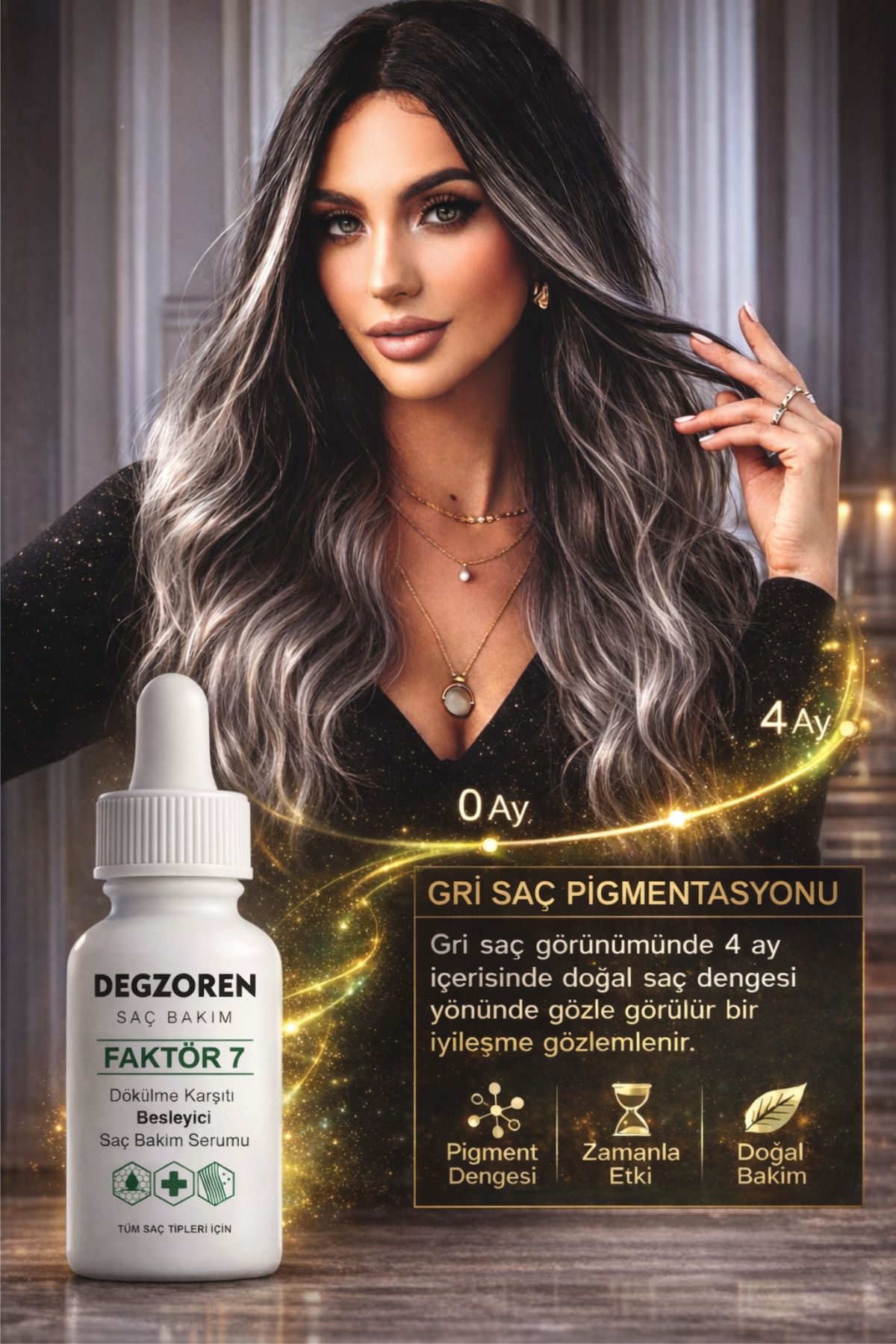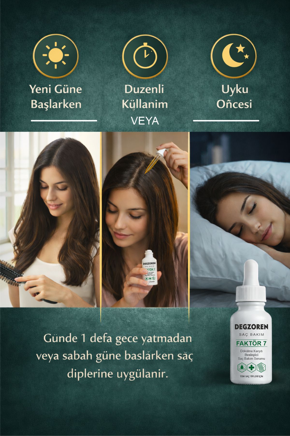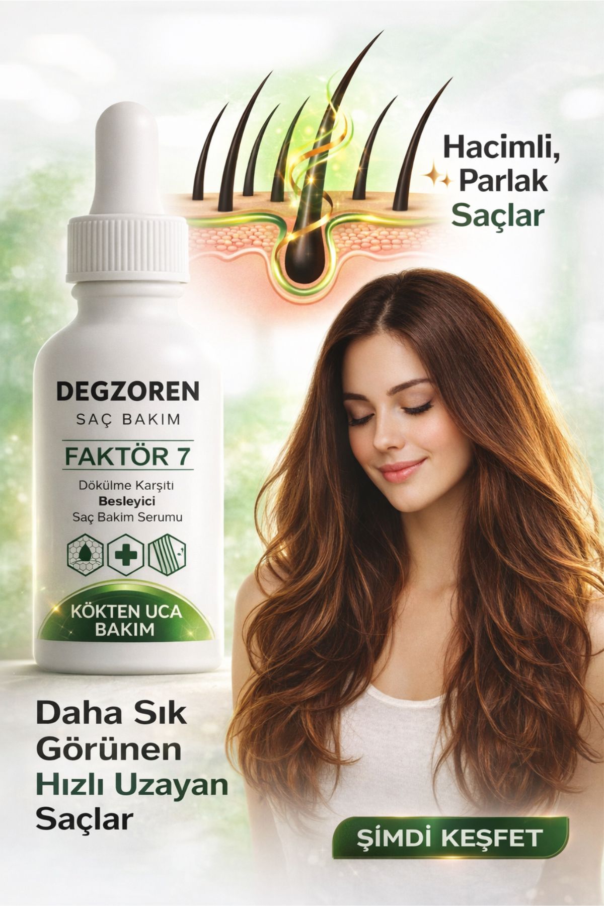 Degzoren Faktör 7, saç ve saç derisi bakımına yönelik olarak geliştirilmiş özel formülüyle saç köklerinin bakımını desteklemeye yardımcı olur. Bitkisel özler, vitaminler ve proteinlerle zenginleştirilmiş yapısı sayesinde saç derisinin canlı görünümünü destekler, saçın daha güçlü ve sağlıklı görünmesine katkı sağlar.