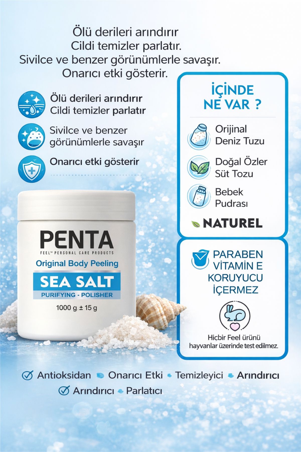 Doğal minerallerle cildi derinlemesine temizler.