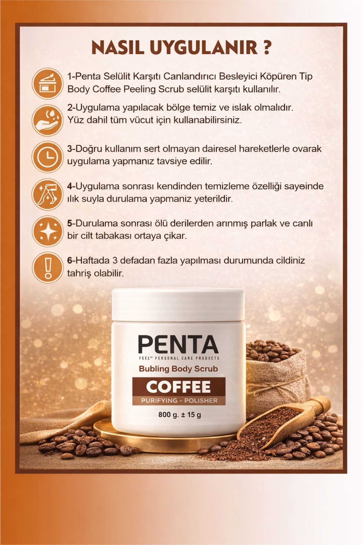 🔥 Penta Selülit Karşıtı Sıkılaştırıcı & Canlandırıcı Köpüren Coffee Scrub 800 g
